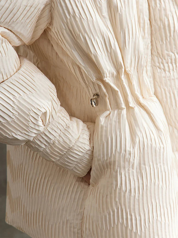 Son col montant architectural agit comme une écharpe intégrée, bloquant le vent glacial avec douceur. Les poignets resserrés et la longueur idéale (couvrant les hanches) vous assurent une protection totale, que vous soyez en station de ski ou en plein cœur de Paris.