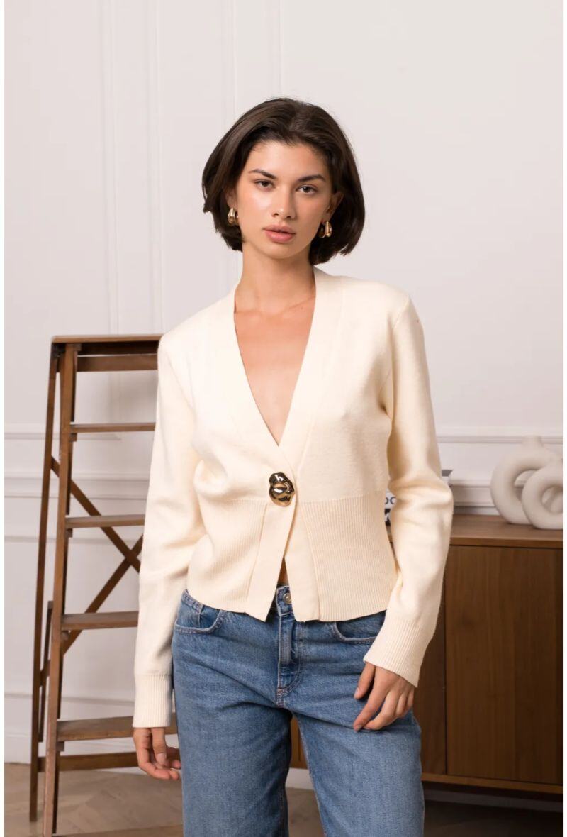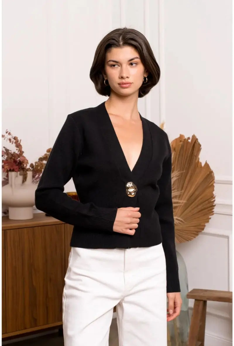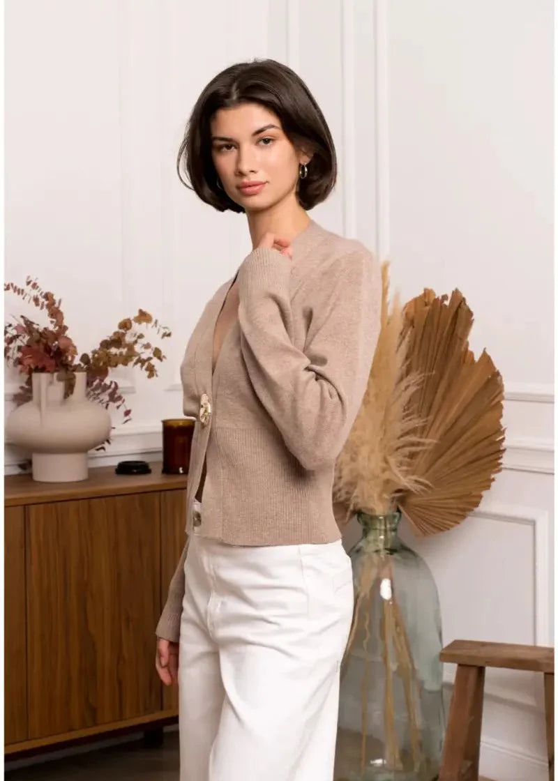 Le Cardigan Élégance incarne la finesse et le style intemporel. Avec son col en V et sa coupe harmonieuse, il apporte une touche chic et soignée à toutes vos tenues, que ce soit au bureau ou lors de vos sorties.